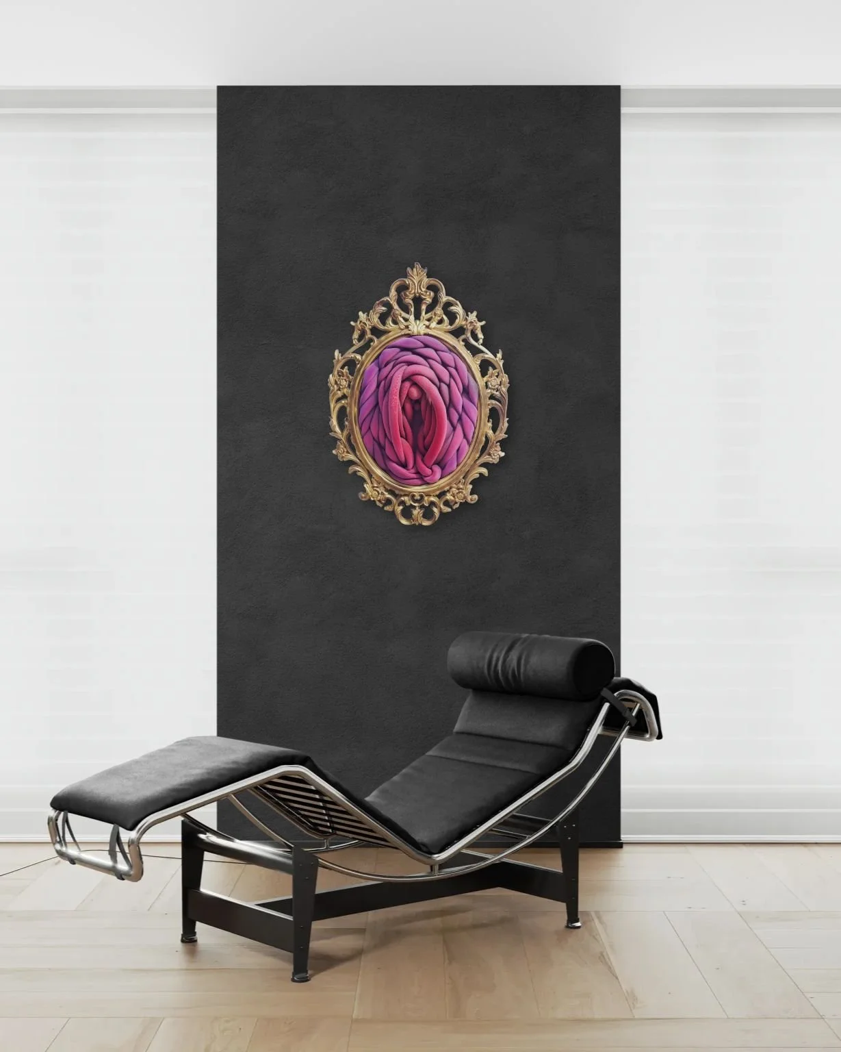 Light foamy pattern hand painted, covered with electrostatic nylon fibers.